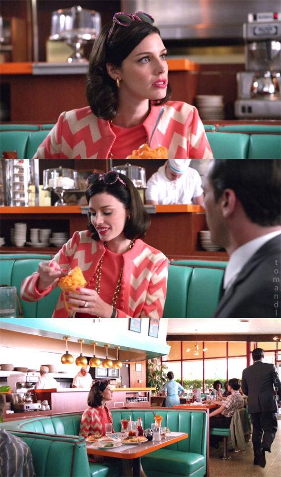 Megan started off as a SCDP secretary who turned Don’s head with a kiss. She had more success with this move than Don’s witless secretary Meredith did in “Waterloo.”
