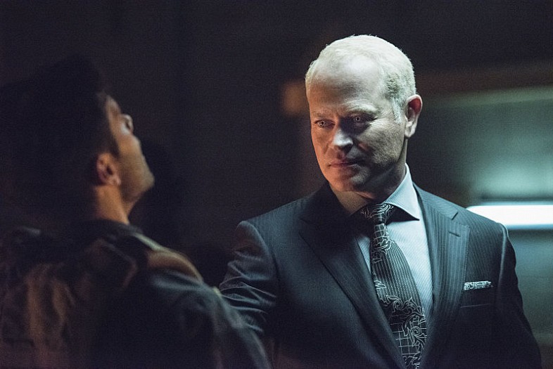 Five minutes in, Damian Darhk is already more menacing than Ra’s al Ghul was the entire season. He is the ultimate in Lawful Evil; he is rational and logical where Ra’s was all old world superstition. And my God, does he rock those suits.