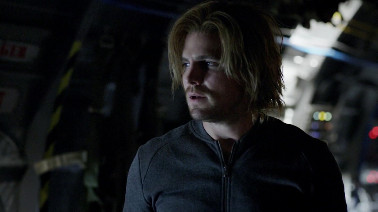 In other news, Lance and Laurel appear to have patched things up, though the revelation of Captain Lance as Darhk’s secret conspirator suggests that all is not well for her father. Laurel’s big-sister relationship with Thea sets up a brother-sister relationship for Oliver and Laurel by extension.  In completely unrelated flashbacks, Oliver tangles with Amanda Waller, parachutes into Lian Yu, and does his best Andy Warhol impression wearing a wig the prop master found by the side of the road.